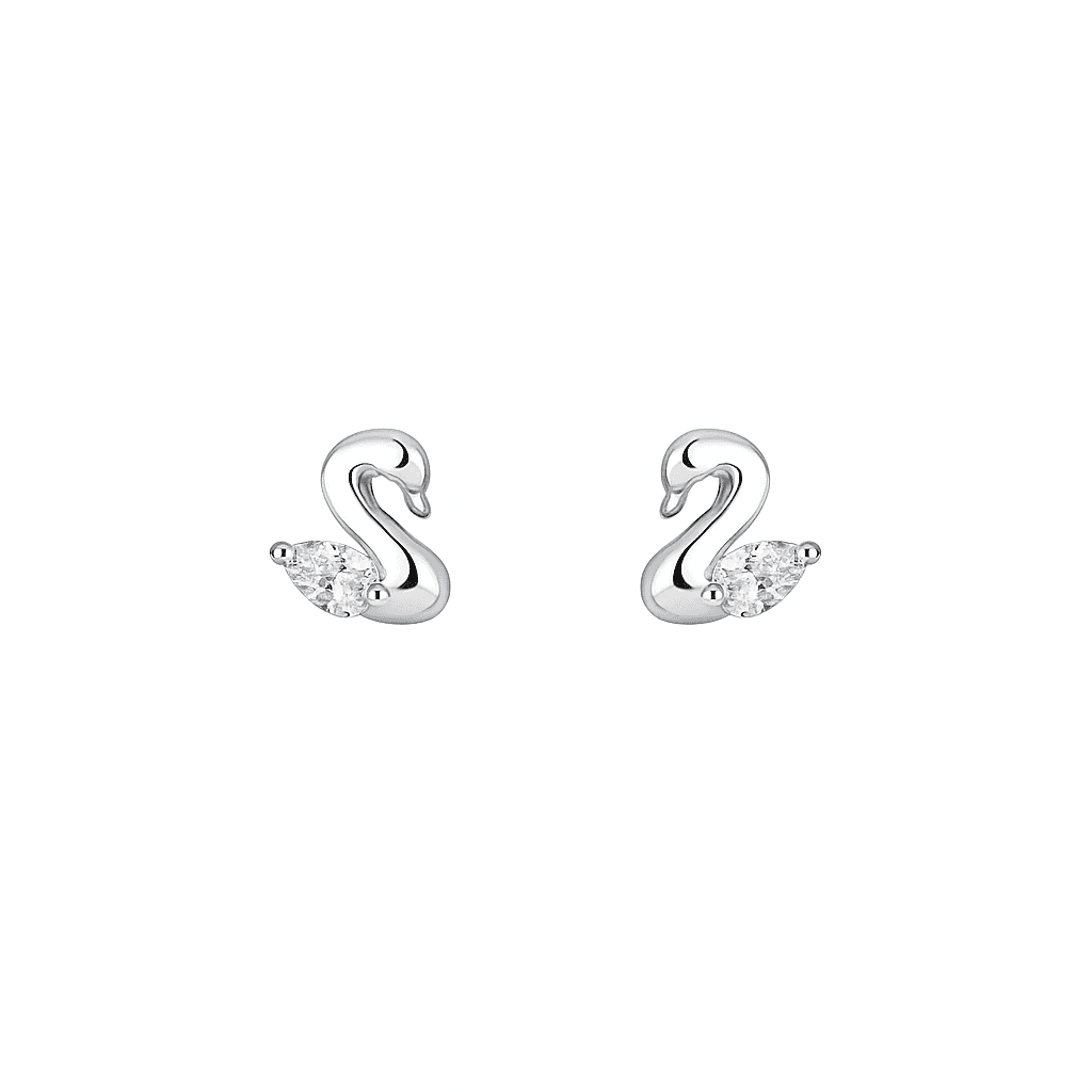 The Cyra Swan Studs are inspired by the serene beauty of swans — a symbol of love, purity, and grace. Crafted in high-polish 925 sterling silver, each stud features a sculpted swan silhouette accented with a sparkling marquise-cut stone that mimics the gentle flutter of a wing.