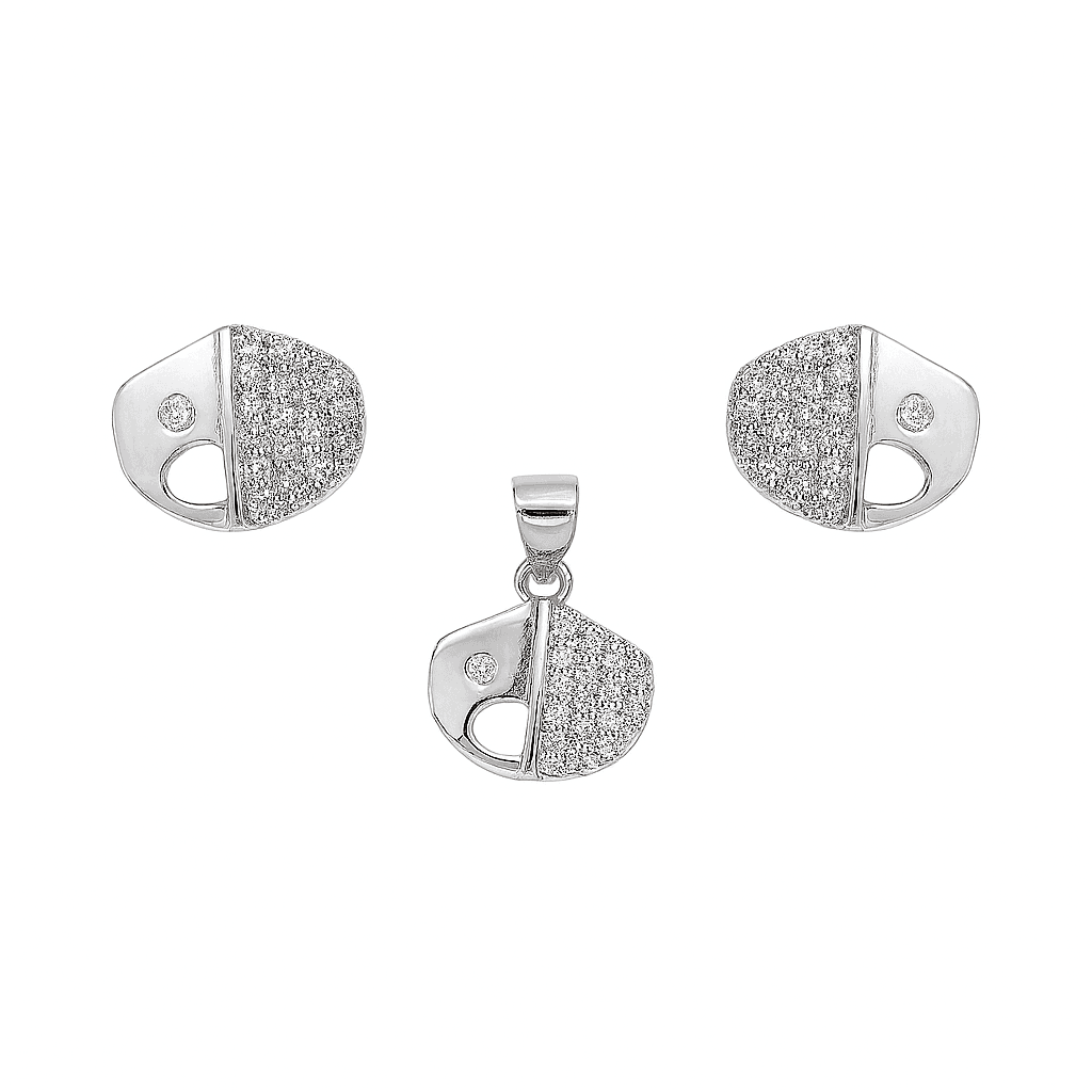 Make a subtle statement with the GeoGleam Set, a modern and minimalistic jewelry combo featuring a sleek pendant and matching stud earrings. Designed with a clean geometric silhouette, this set is embellished with shimmering cubic zirconia and a contemporary cutout for added edge and elegance.