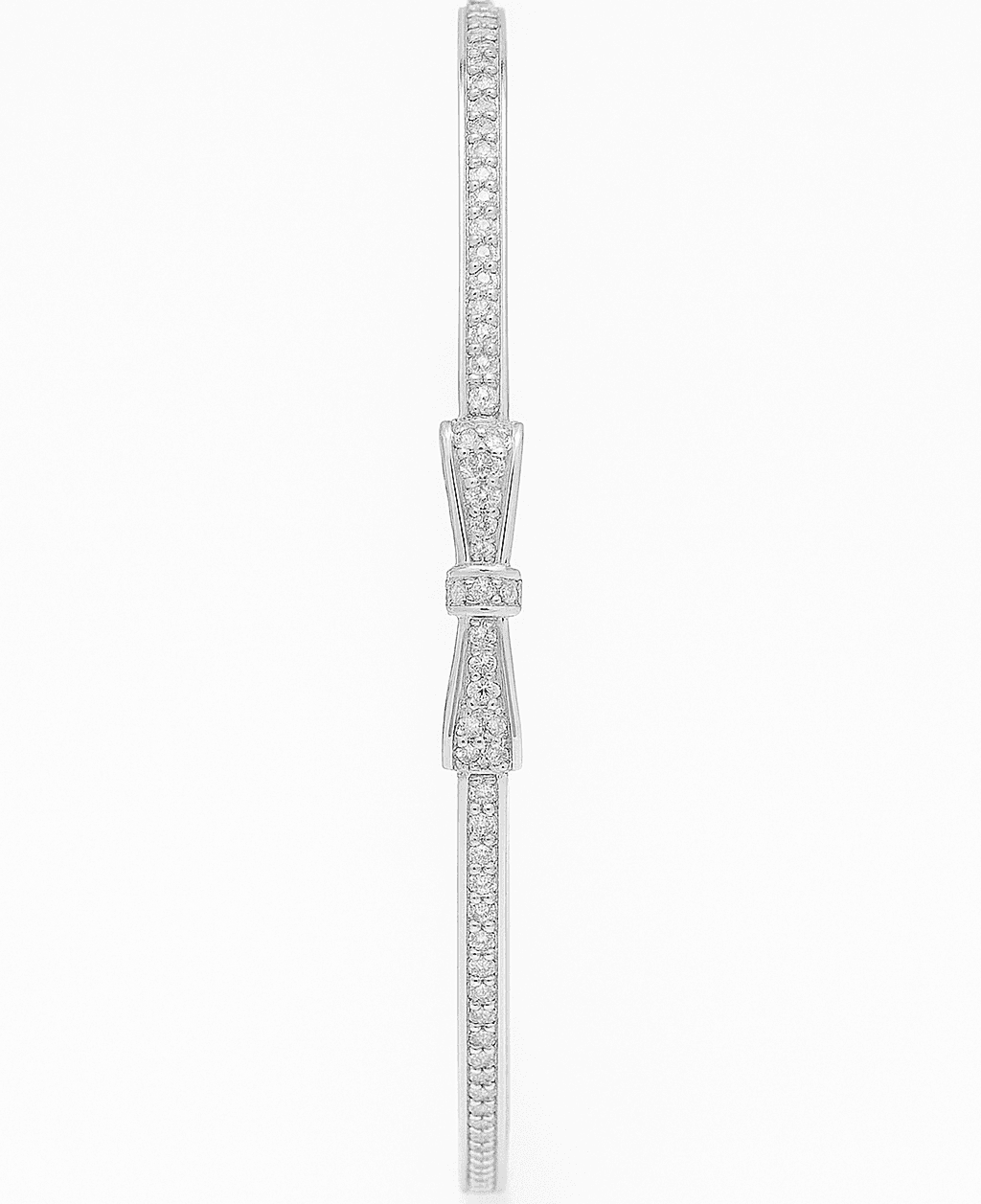 A graceful 925 sterling silver kada featuring a sleek bow-shaped centerpiece, beautifully paved with crystals for a refined sparkle.