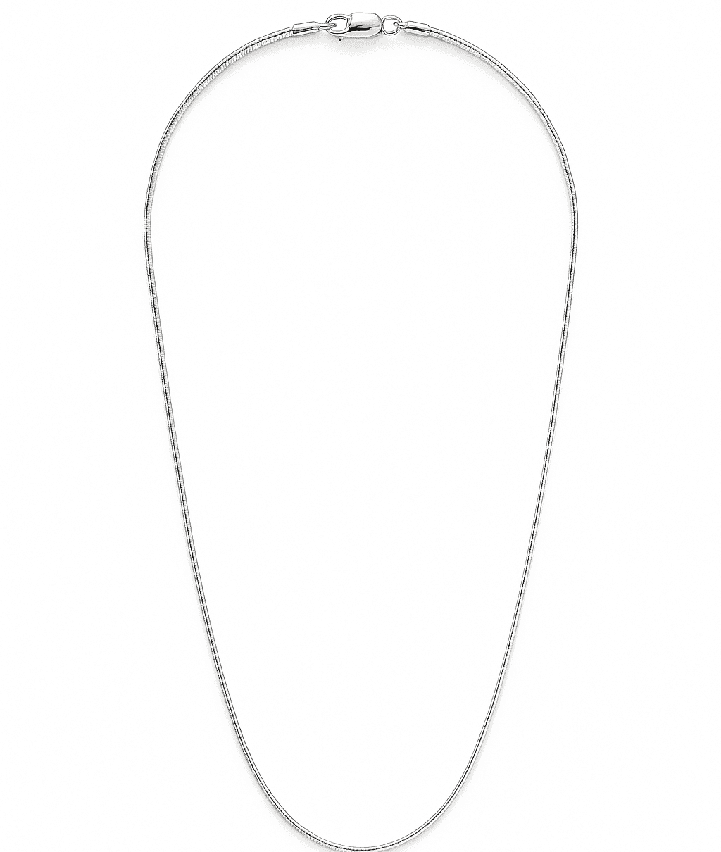 A sleek and fluid silver snake chain—bold in simplicity, made to shine on its own or with your favorite pendant.