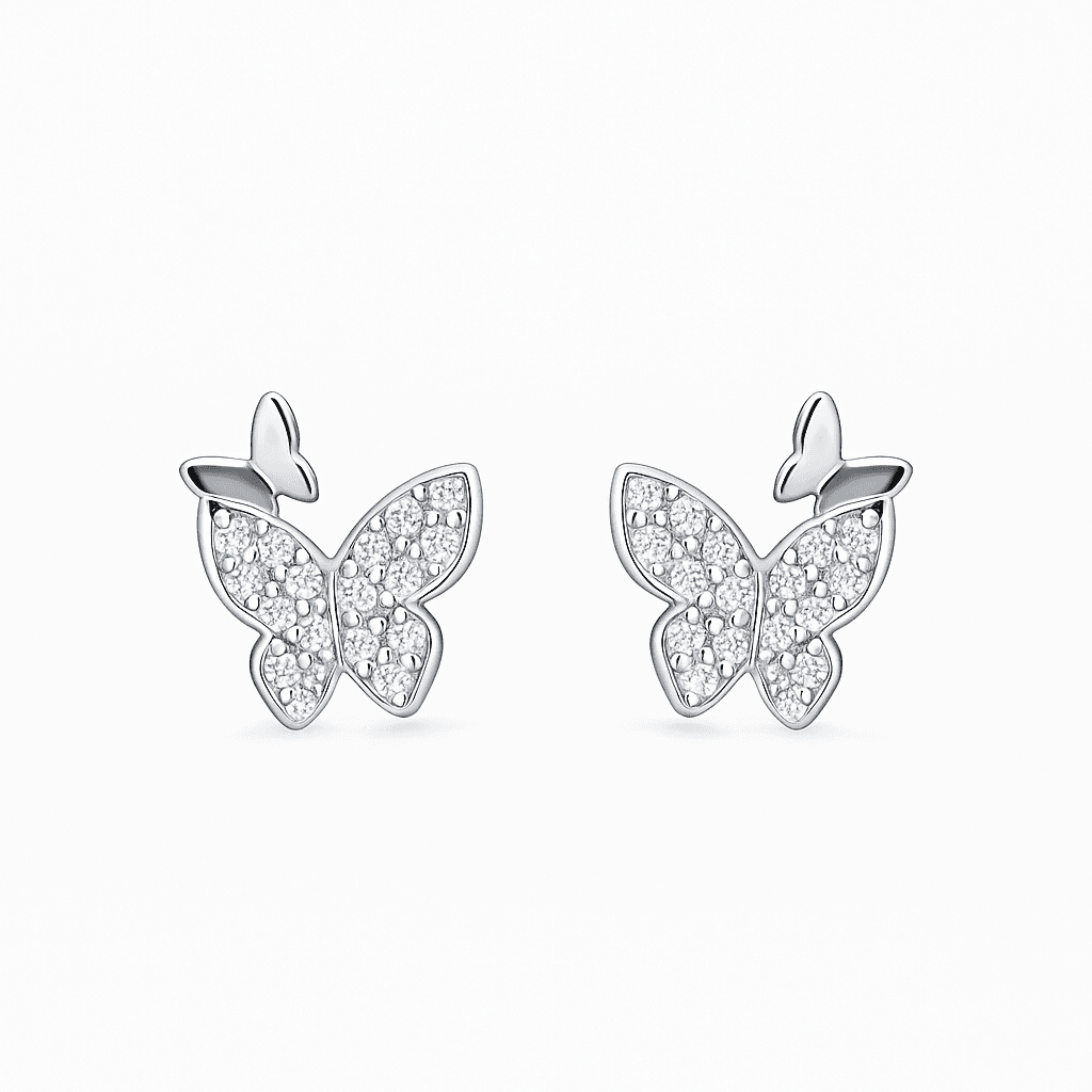 The Serapha Wings Studs are a sparkling ode to freedom and femininity. Crafted in pure 925 sterling silver, these butterfly-shaped earrings are encrusted with dazzling stones that reflect light with every move. A second mini butterfly fluttering above adds a dreamy layered dimension, making them truly unique.