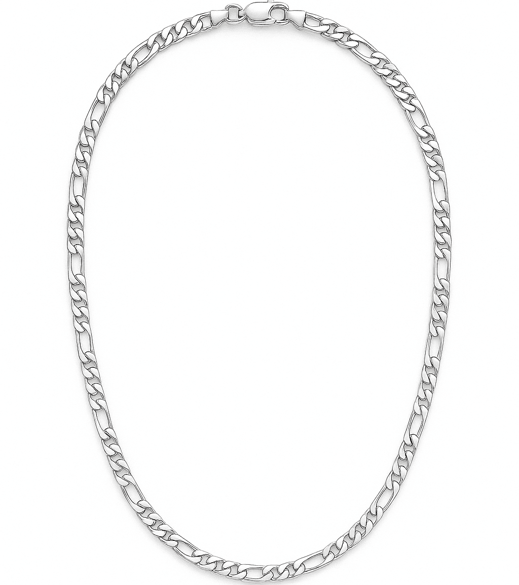 The Sterling Figaro Chain is a timeless essential for those who appreciate classic design with confident presence. Its signature alternating link pattern adds visual texture while maintaining a sleek, polished finish.