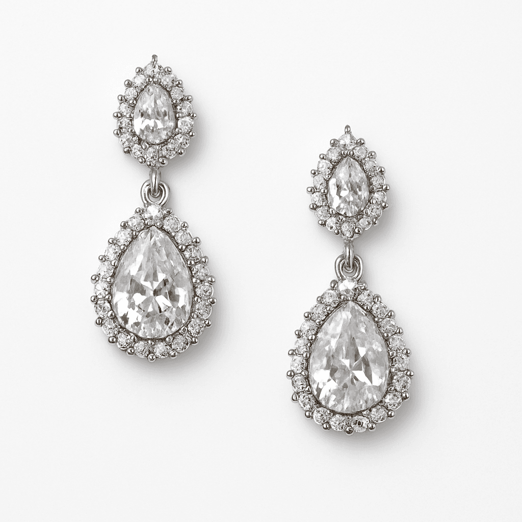 Gracefully designed in 925 sterling silver, the Tear of Elegance Set features pear-cut stones haloed in brilliance — a classic combination of grace and glamour.